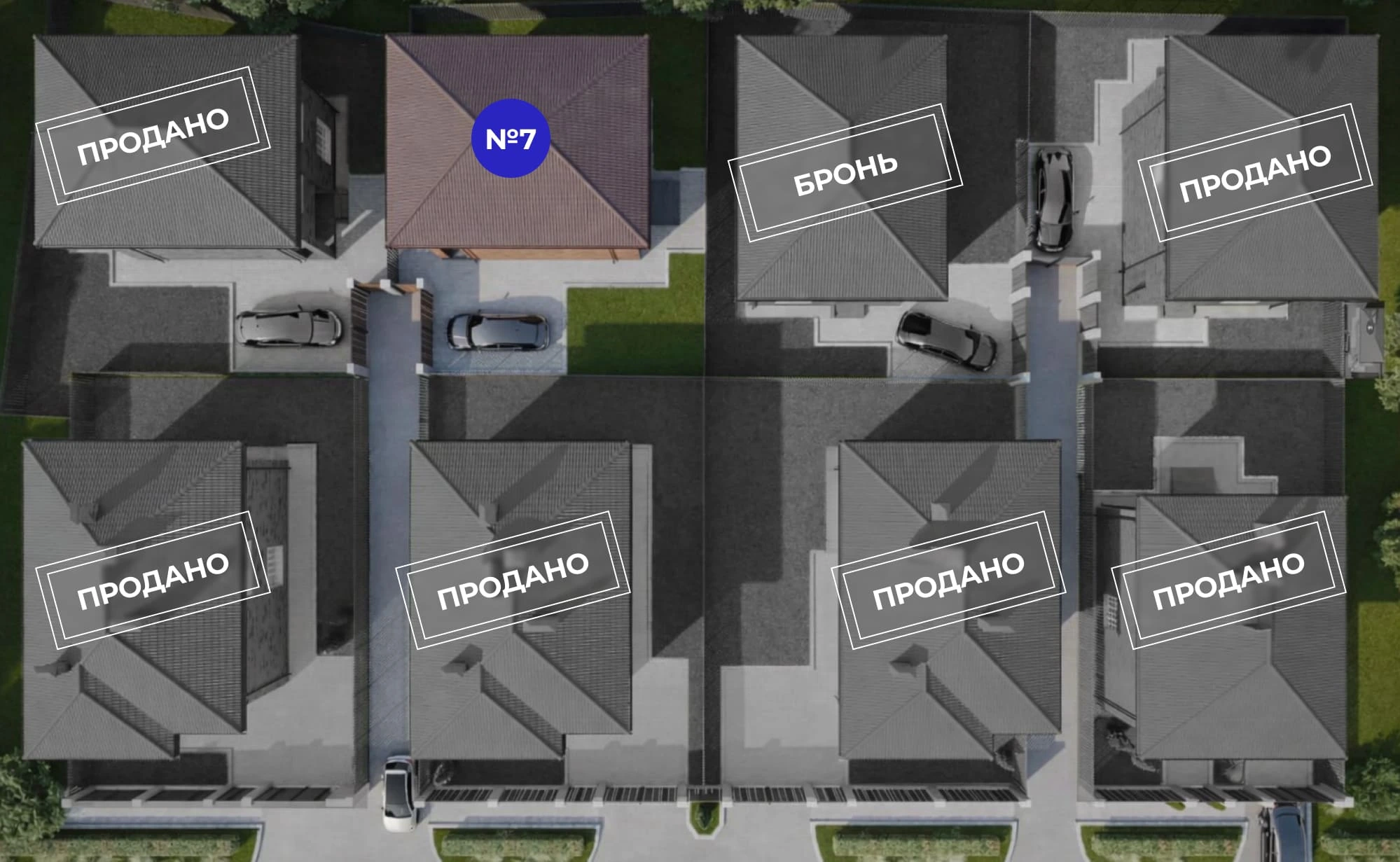 Закрытая территория обеспечивает приватность и безопасность. У участков есть задний двор с террасой. Площадка выложена тротуарной плиткой, хорошая парковка.